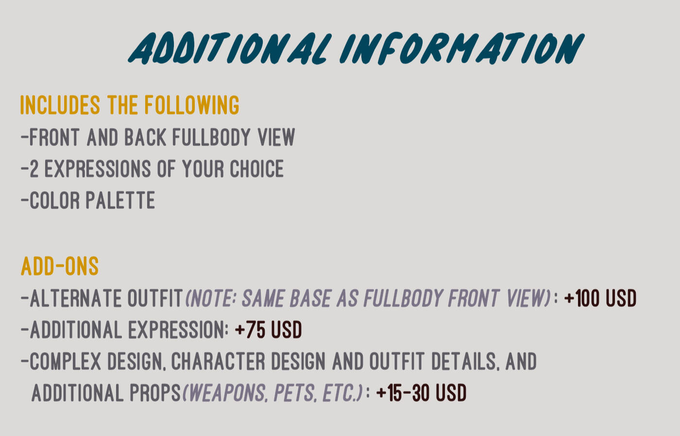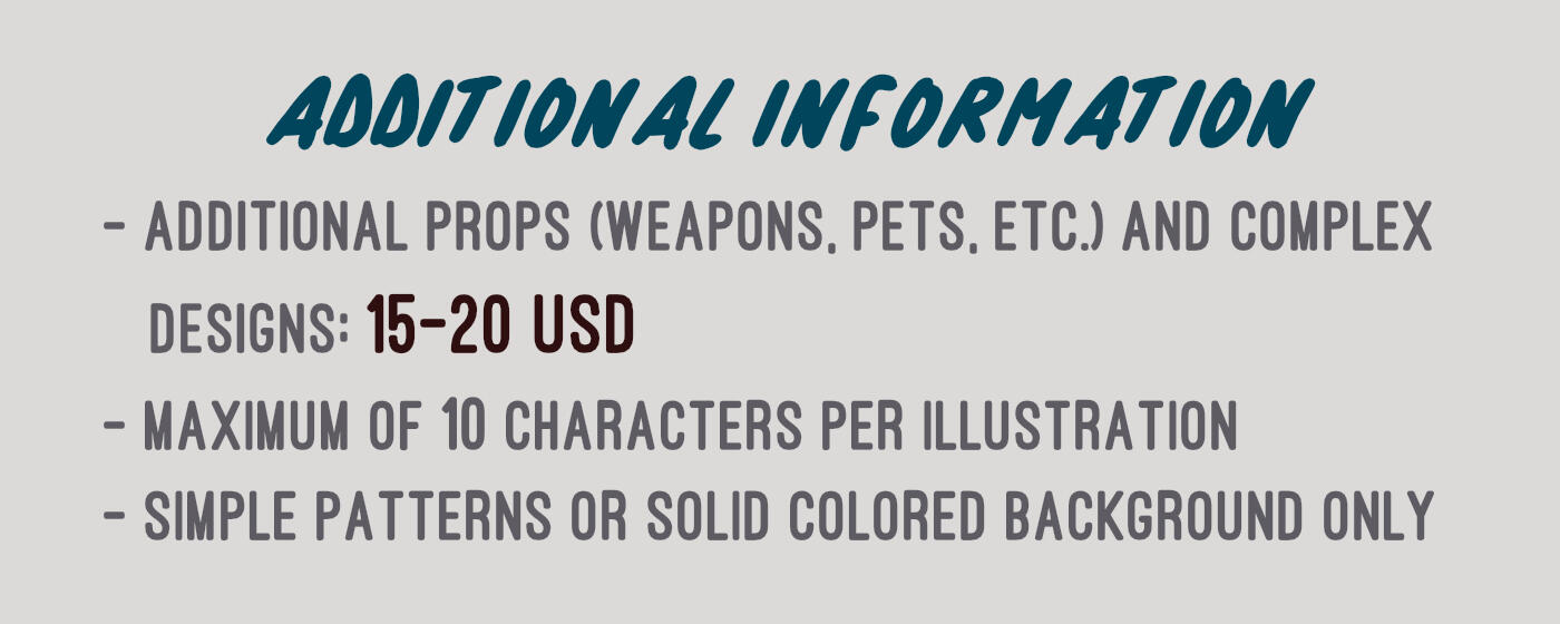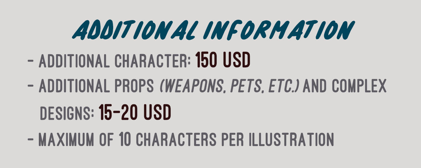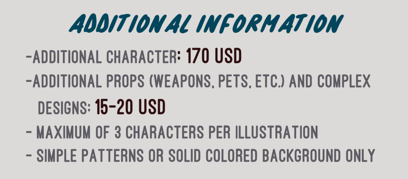 If interested in other commission services not listed here in my Carrd, you may contact me through DM or email me at [email protected].