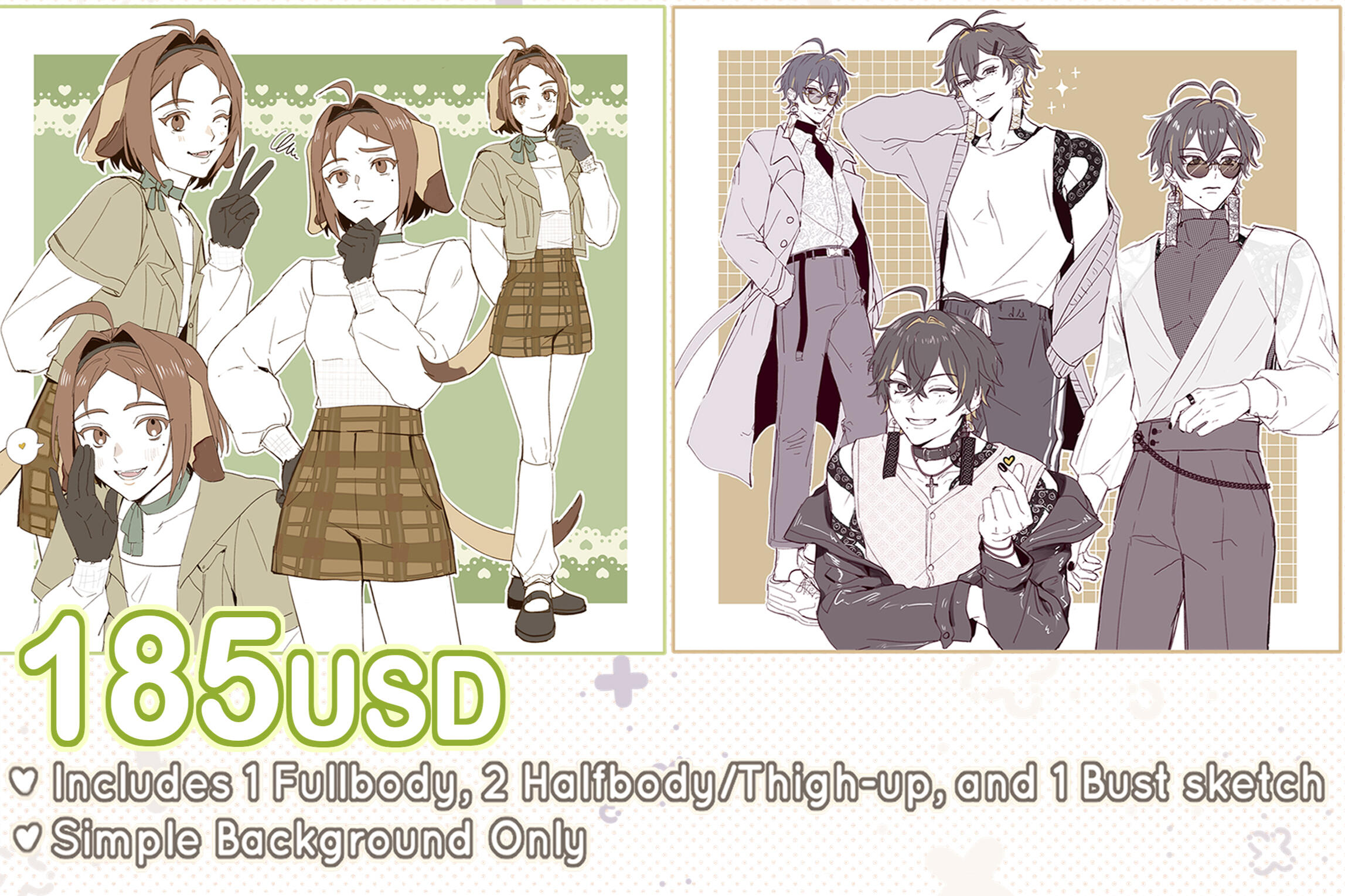Gcash or Bank Transfer is possible for clients from the Philippines2) Paypal invoices will be sent in either US Dollar or Philippine Peso currency only, depending on the client's preference.3) I will only begin once the payment has been sent. All payments are non-refundable unless:- I have not yet begun with your commission.- I am unable to complete your commission within 3 months or the time agreed upon- I am unable to finish due to personal issues and other unforeseen circumstances.
